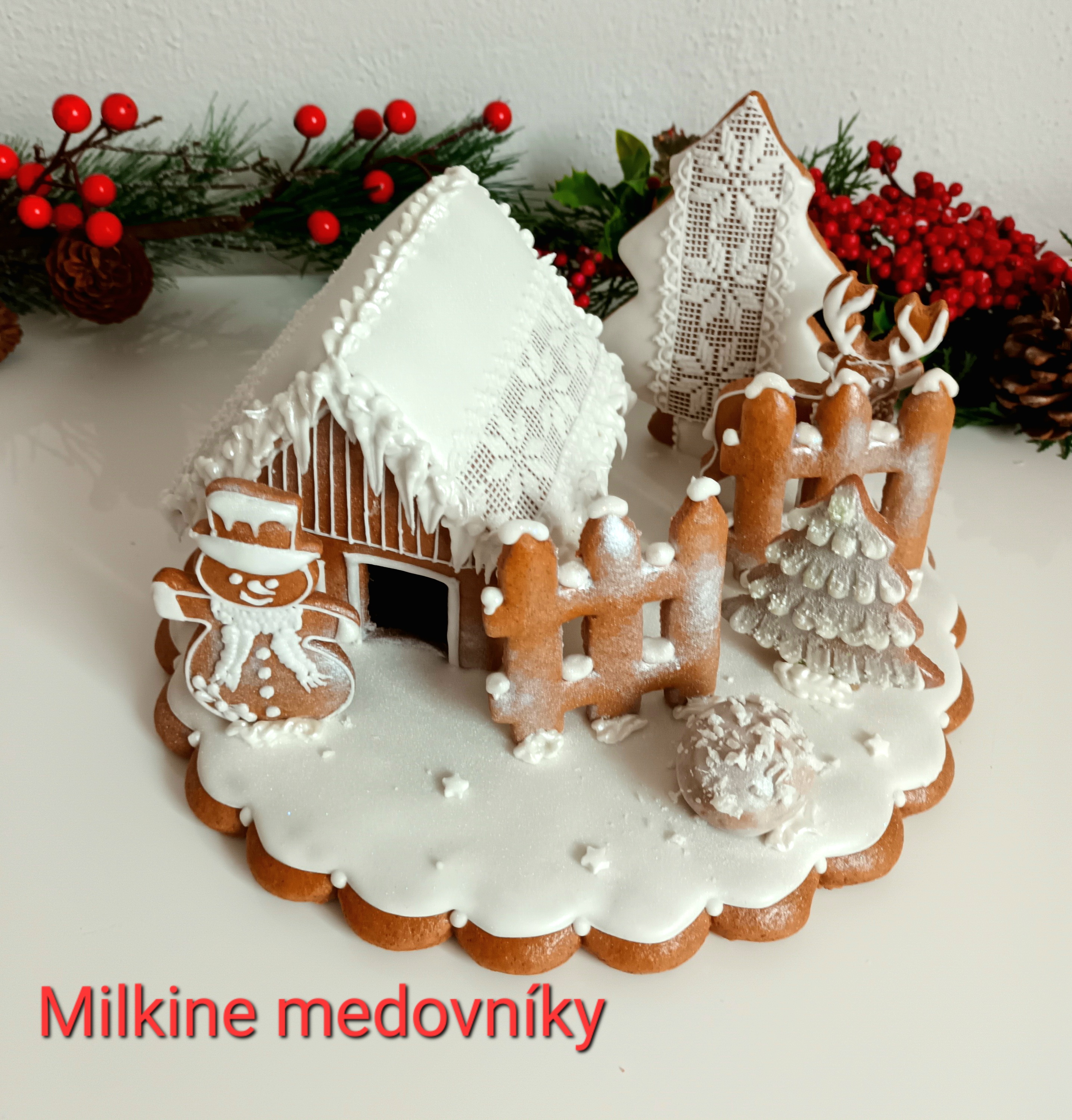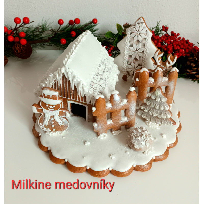 Zdobenie 3D medovníkovovej chalúpky a medovníkov